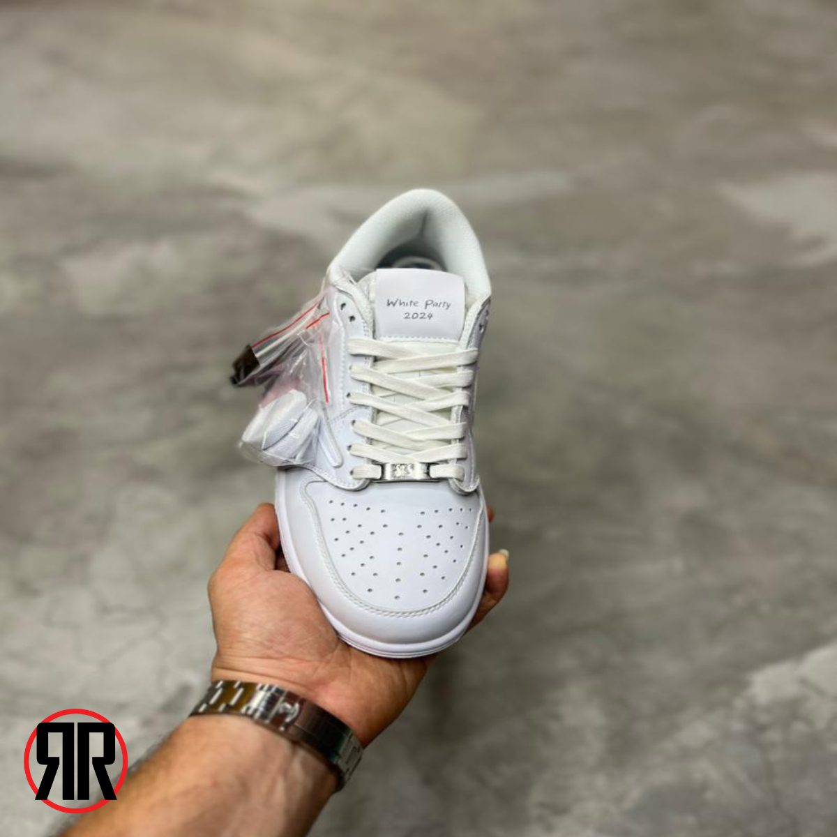 - رنگبندی: این مدل با تم سفید (White Party) عرضه شده است که با جزئیات ظریف و لوگوی معکوس نایک (Swoosh) در کنار کفش، ظاهری شیک و مدرن دارد. رنگ سفید غالب به همراه جزئیات مشکی یا متالیک، جلوهای مینیمال و در عین حال جذاب ایجاد میکند.